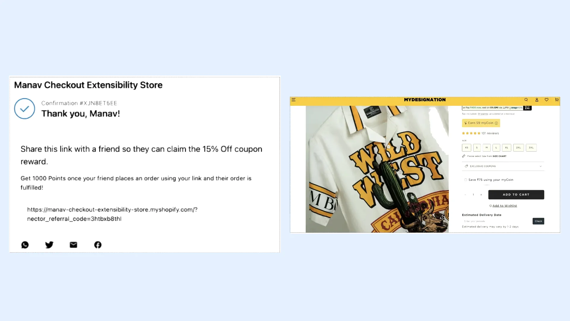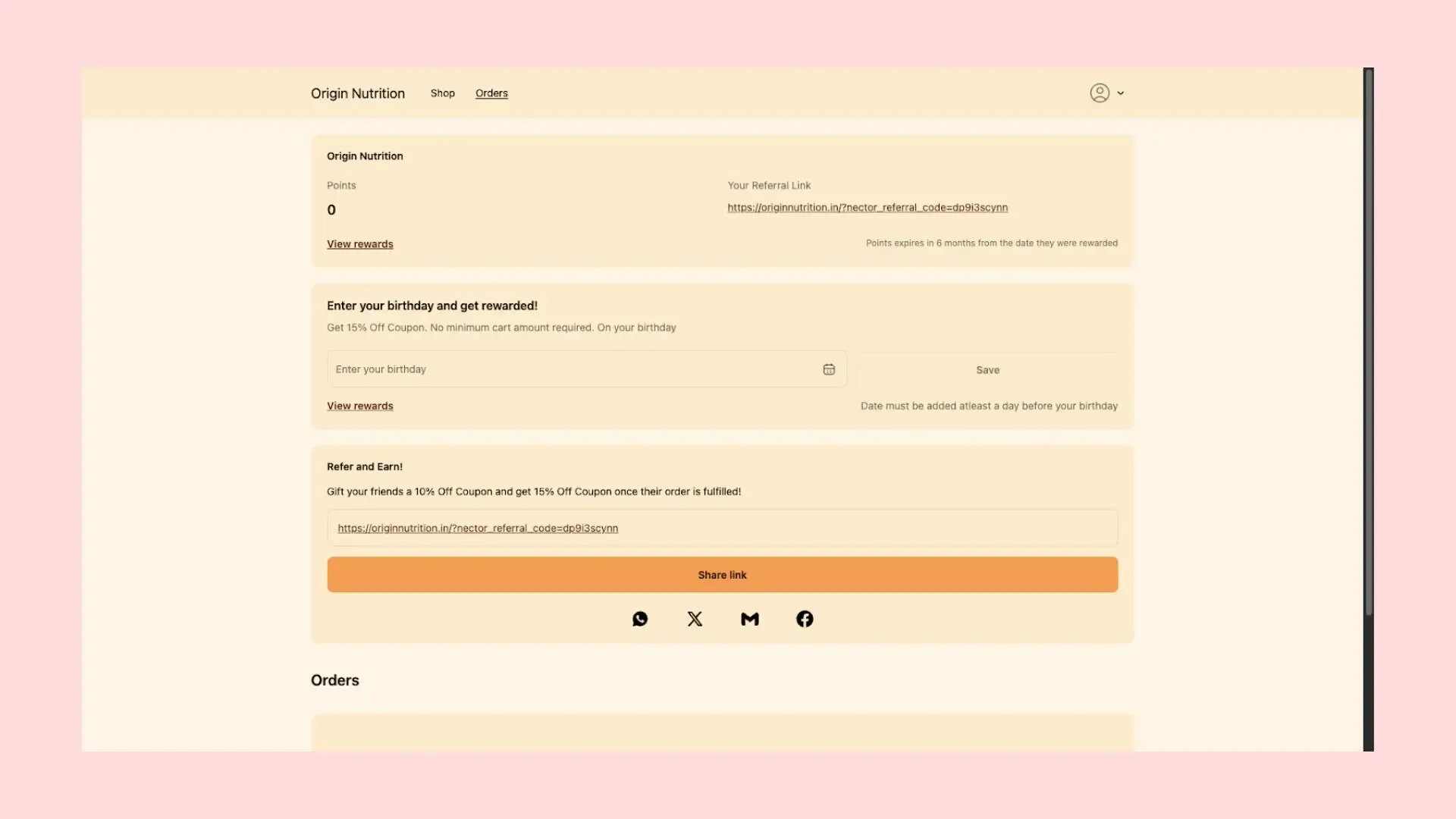 Encourage customers to refer friends and earn loyalty coins after purchase.