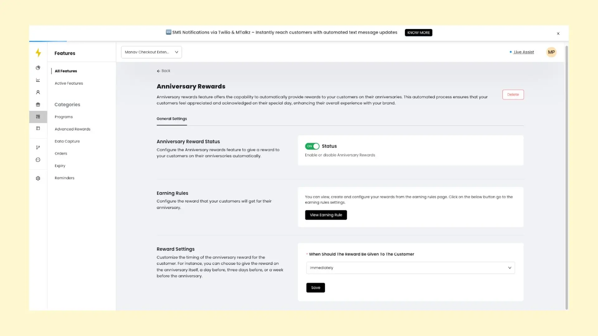 - New Reward Type: Brands can now offer Anniversary Rewards (e.g., a reward on the anniversary of a customer's sign-up or first purchase), running parallel to Birthday Rewards.