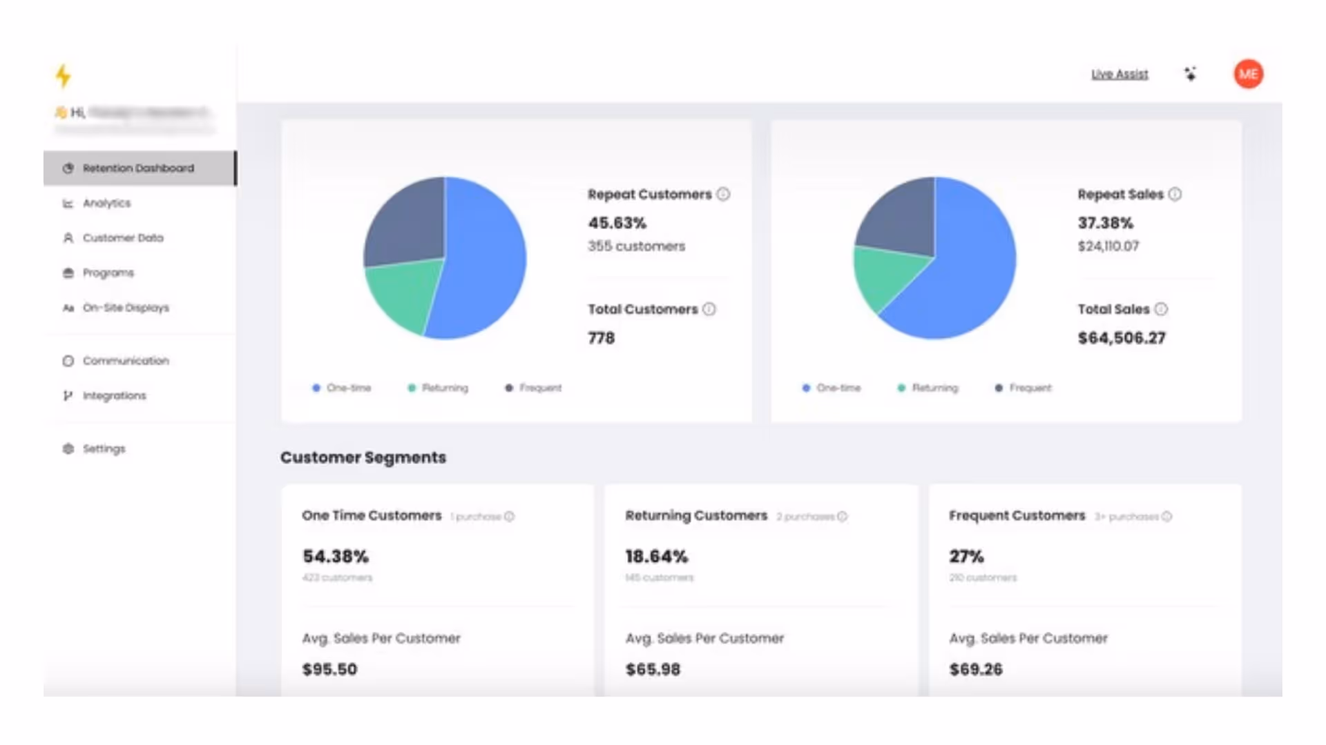 The retention dashboard lets you understand how returning customers contribute to your revenue