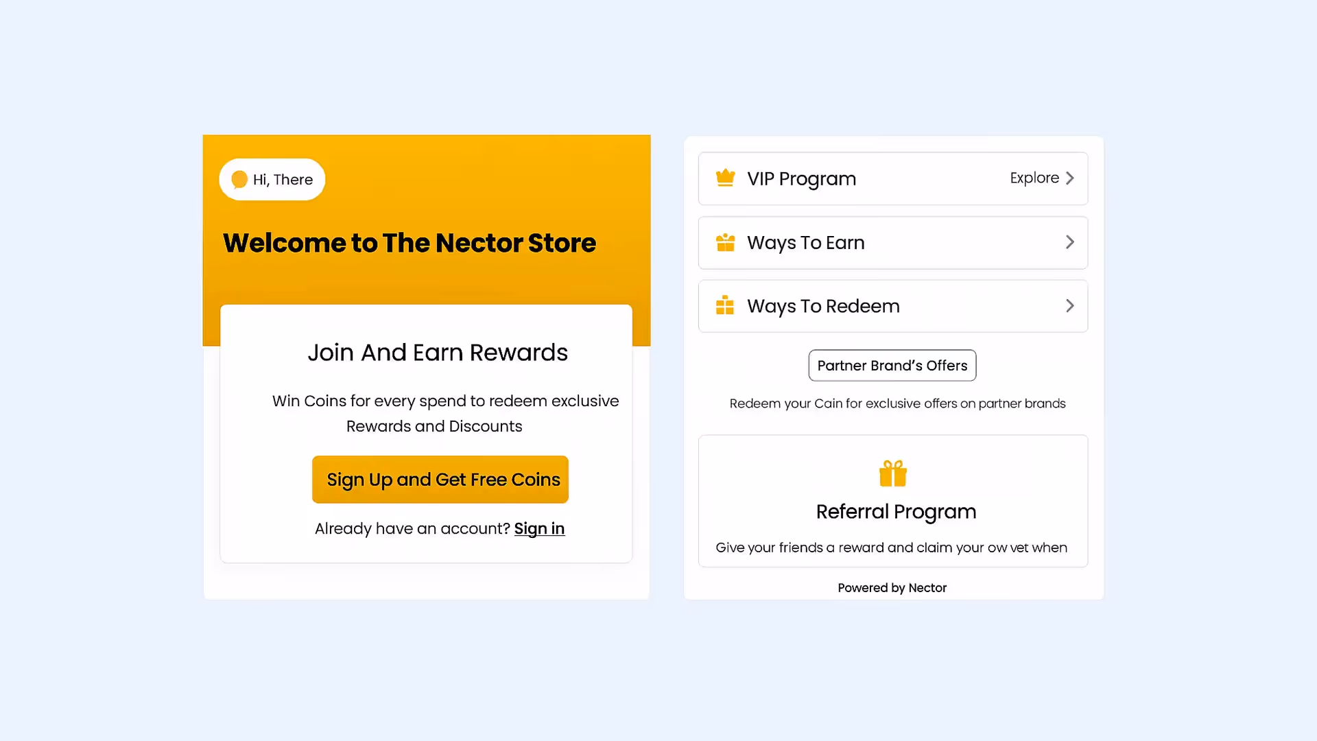 Nector is a Reward, Loyalty, and Review solution for your e-commerce business. It's been designed to help you boost sales and cultivate lasting brand loyalty. With Nector, you can effortlessly set up an effective loyalty program and gain valuable insights to deliver personalized experiences that leave a lasting impression.