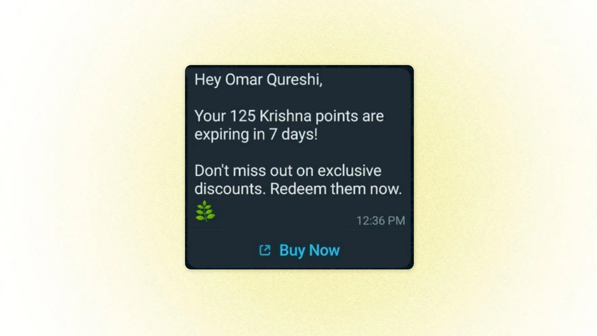 After a customer places an order and earns loyalty coins, a timely follow-up message can encourage them to redeem those coins on their next purchase. This helps drive repeat orders while the brand experience is still fresh.