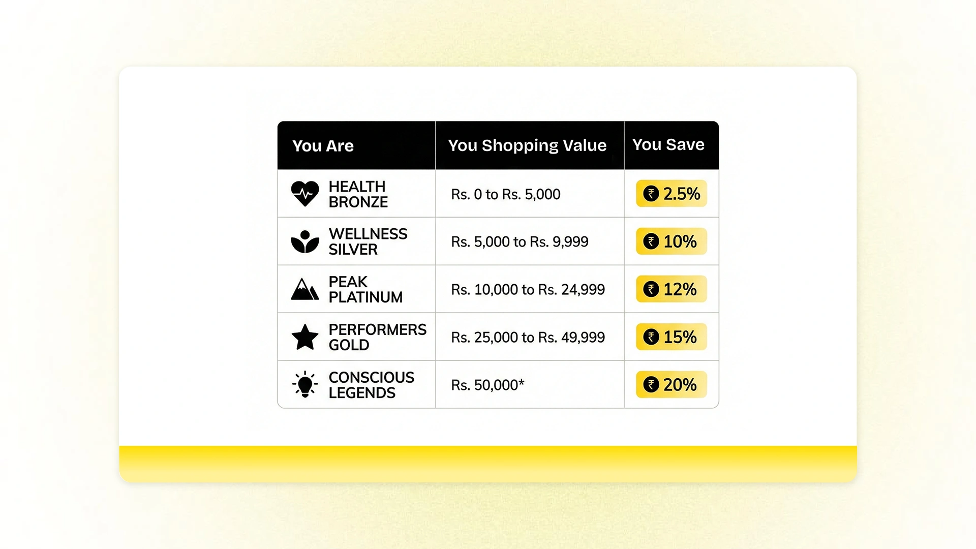 - Gold: 3 coins per ₹1 spent
