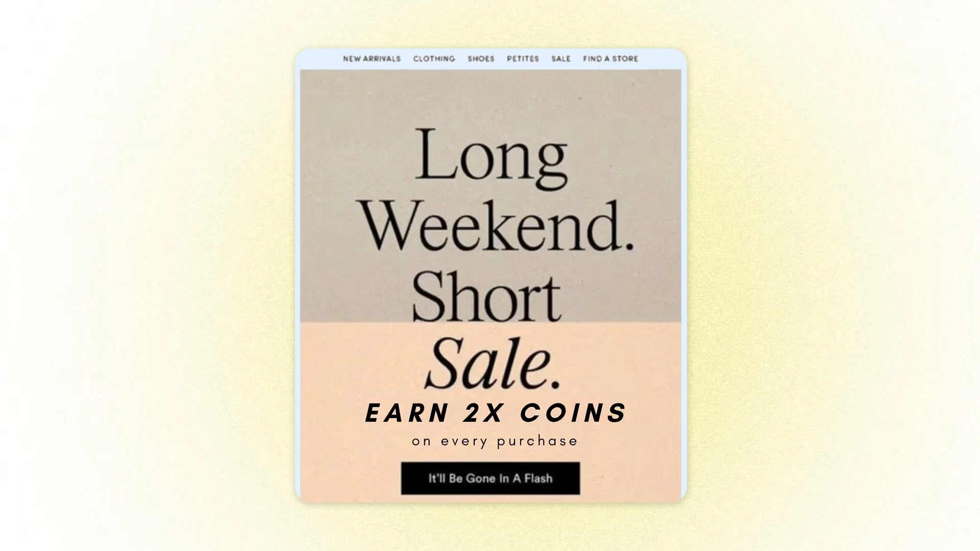 Hello [Customer Name]! Spice up your weekend with extra rewards. For a limited time, earn 2× coins on every purchase and review. Stack up your coins and enjoy more savings!